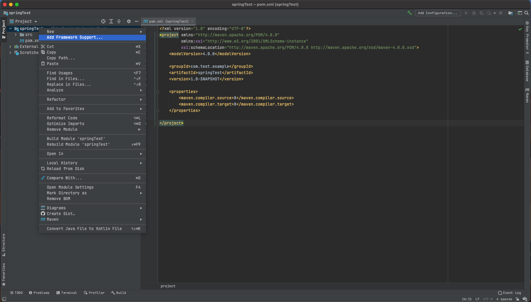 4. 프로젝트 이름에서 우클릭을 해서 Add FrameWork Support를 선택해준다,