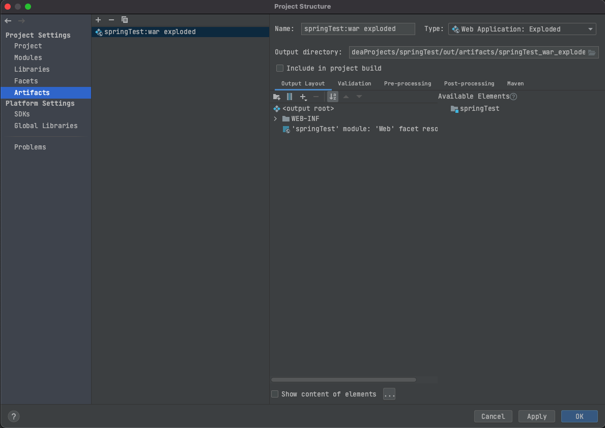 먼저 project structure에서 Artifact를 먼저 만들어준다. Maven을 통해서 만들어진 결과물을 베포 하는 파일을 설정하는 부분인데 개발지식이 적기도 했고 새로운 IDE를 사용해서 오류가 굉장히 많이 났다. 개발자의 기본소양은 로그를 보고 에러를 분석하는 능력이라던데 기본이지만 항상 에러는 어렵고 항상 원인을 찾기 힘들다. 아직까지 왜 제대로 동작을 안 했는지 이유는 모르지만 최소한 어떻게 하면 제대로 동작하는지 알았으니까 이걸로 된 걸까..?