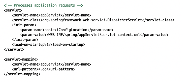 XML에서 DispatcherServlet을 정의하는 예시 코드 (web.xml에 자동으로 생성됨)