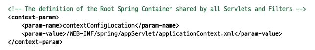 - 설정 파일은 contextConfigLocation 속성에서 설정하지 않으면 WEB-INF/applicationContext.xml이다.